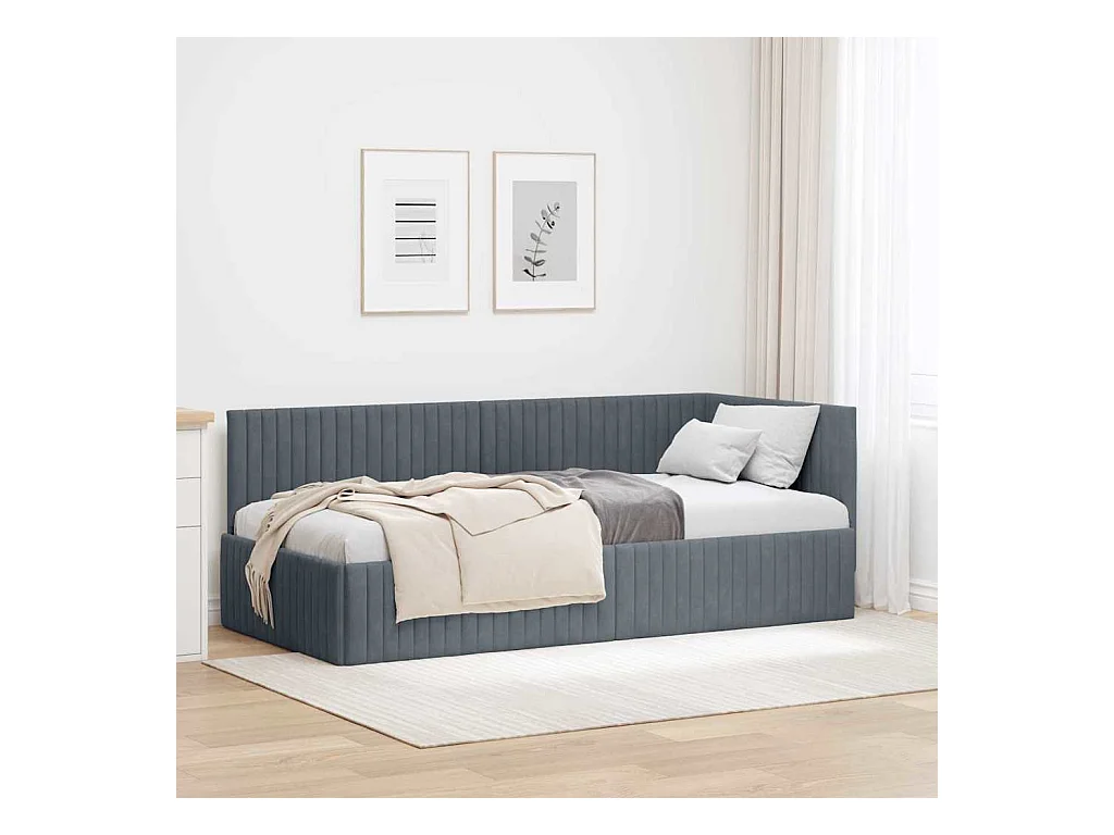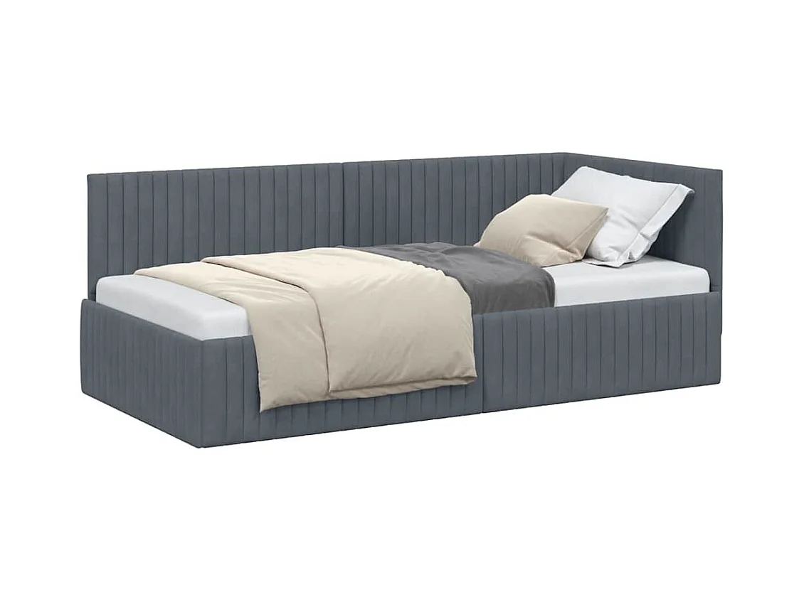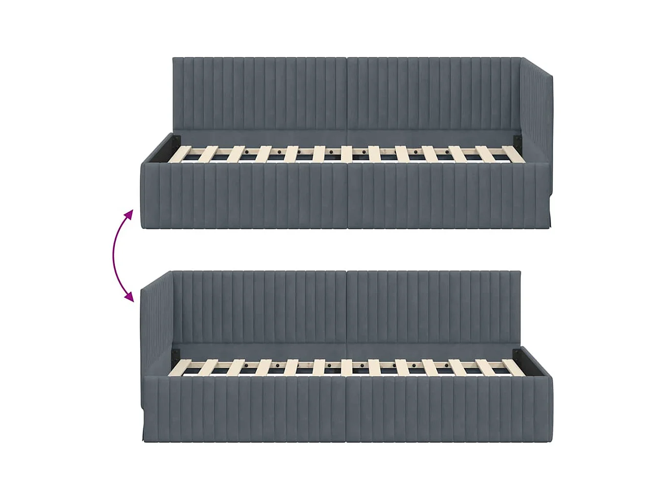 Cadre de lit d'angle Gris foncé 90 x 200 cm Velours