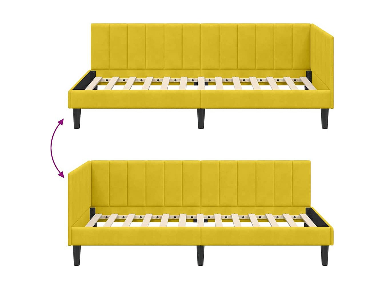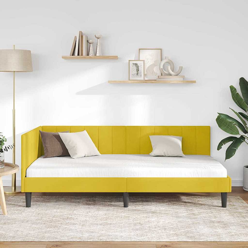 Cadre de lit d'angle Jaune 100 x 200 cm Velours