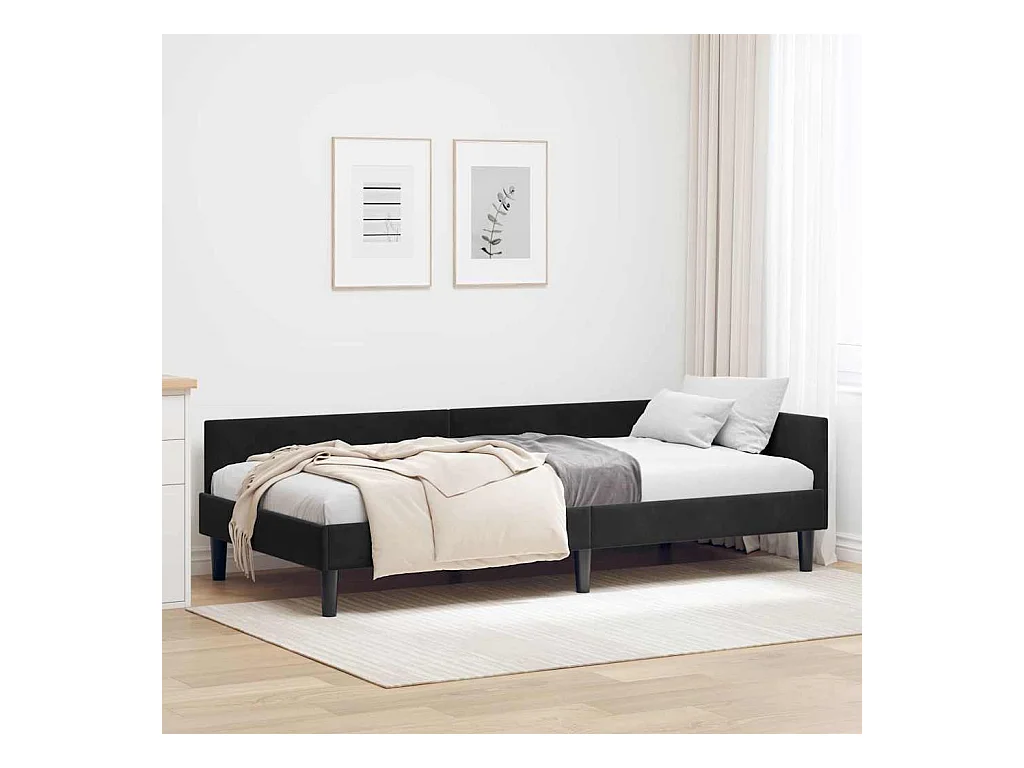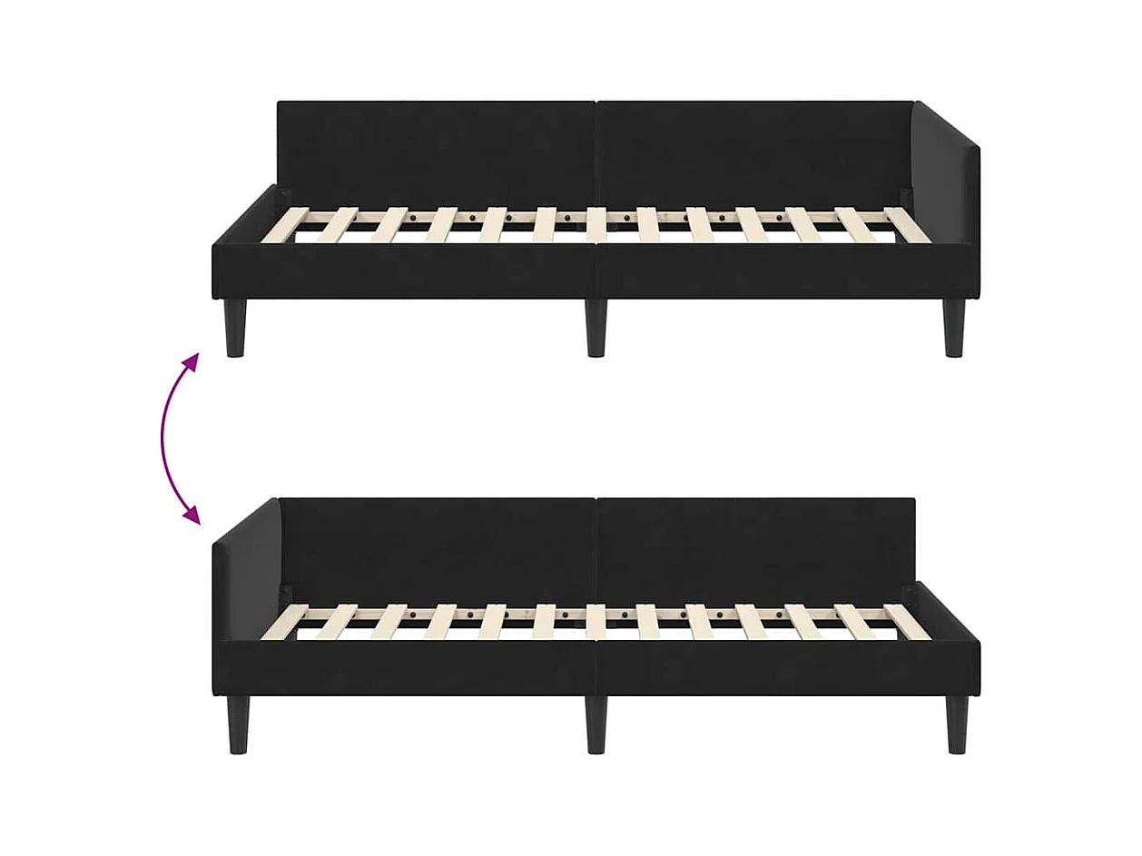 Cadre de lit d'angle Noir 80 x 200 cm Velours et bois stratifié