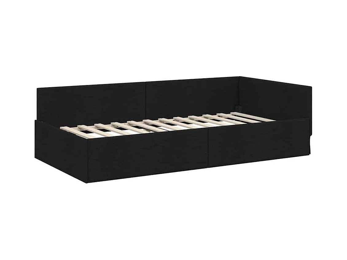 Cadre de lit d'angle Noir 90 x 190 cm Tissu et bois reconstitué