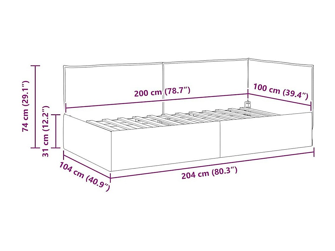 Cadre de lit d'angle Rouge bordeaux 100 x 200 cm tissu