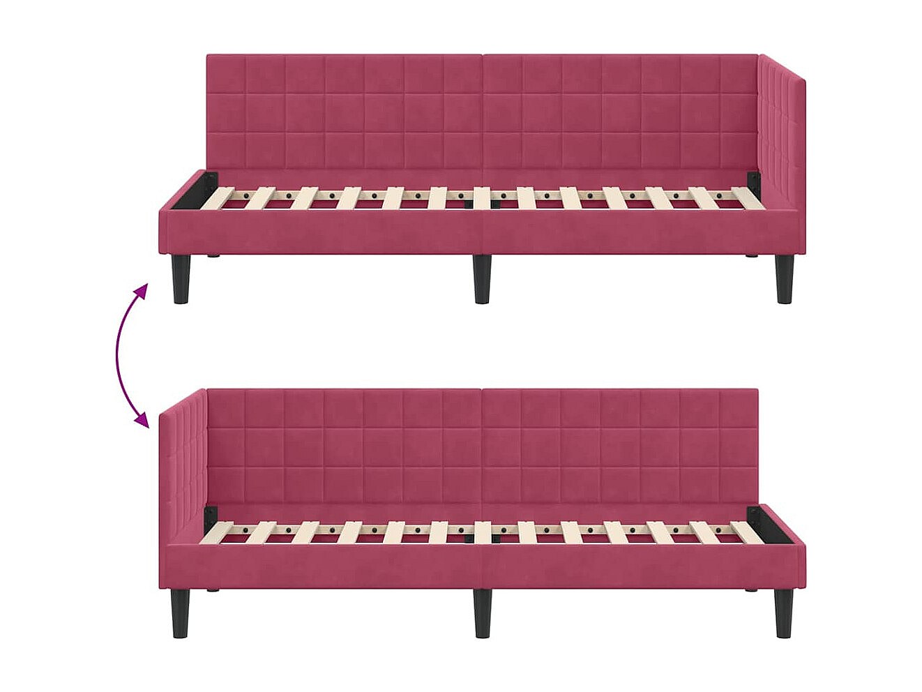Cadre de lit d'angle Rouge bordeaux 80 x 200 cm Velours