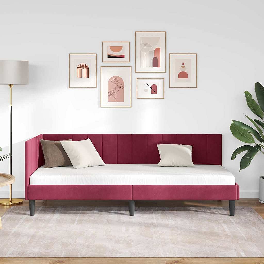 Cadre de lit d'angle Rouge bordeaux 80 x 200 cm Velours