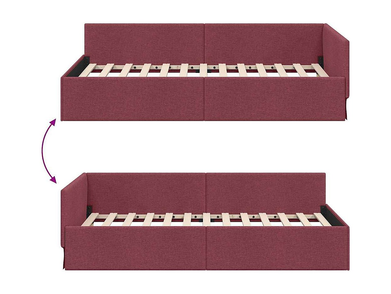 Cadre de lit d'angle Rouge bordeaux 90 x 190 cm