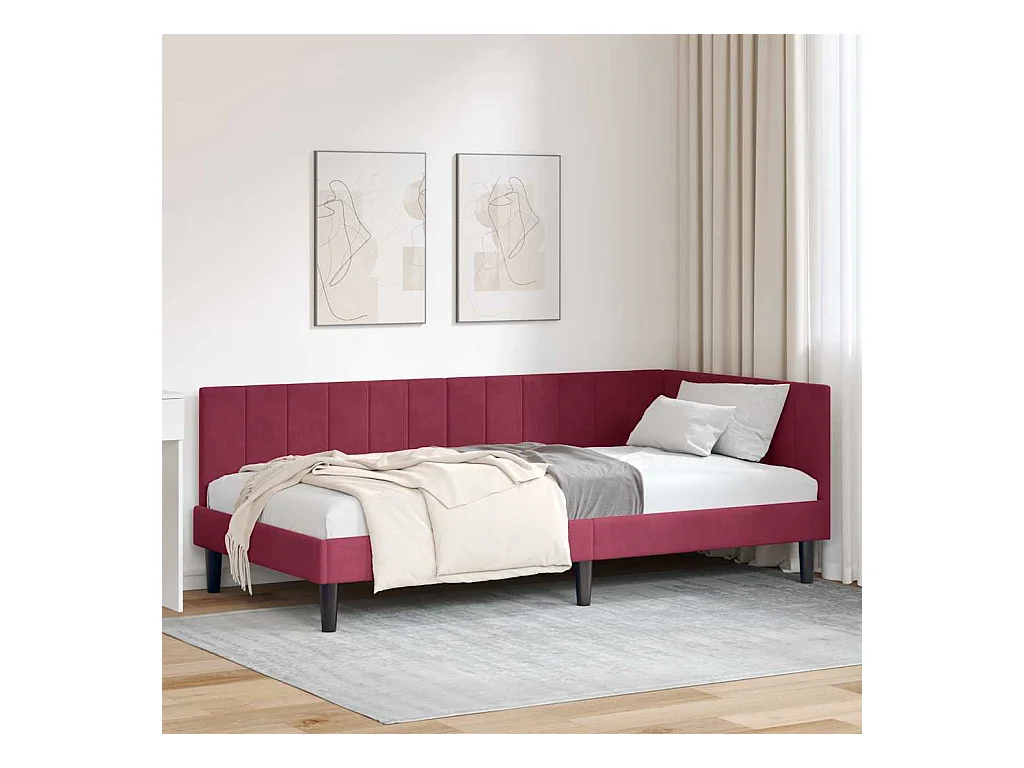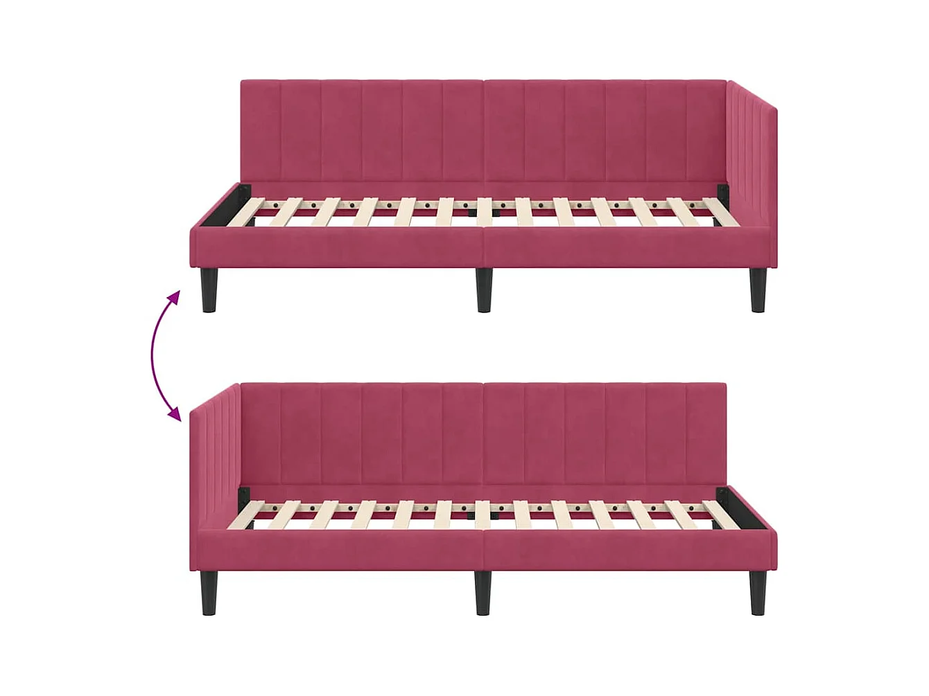 Cadre de lit d'angle Rouge bordeaux 90 x 190 cm