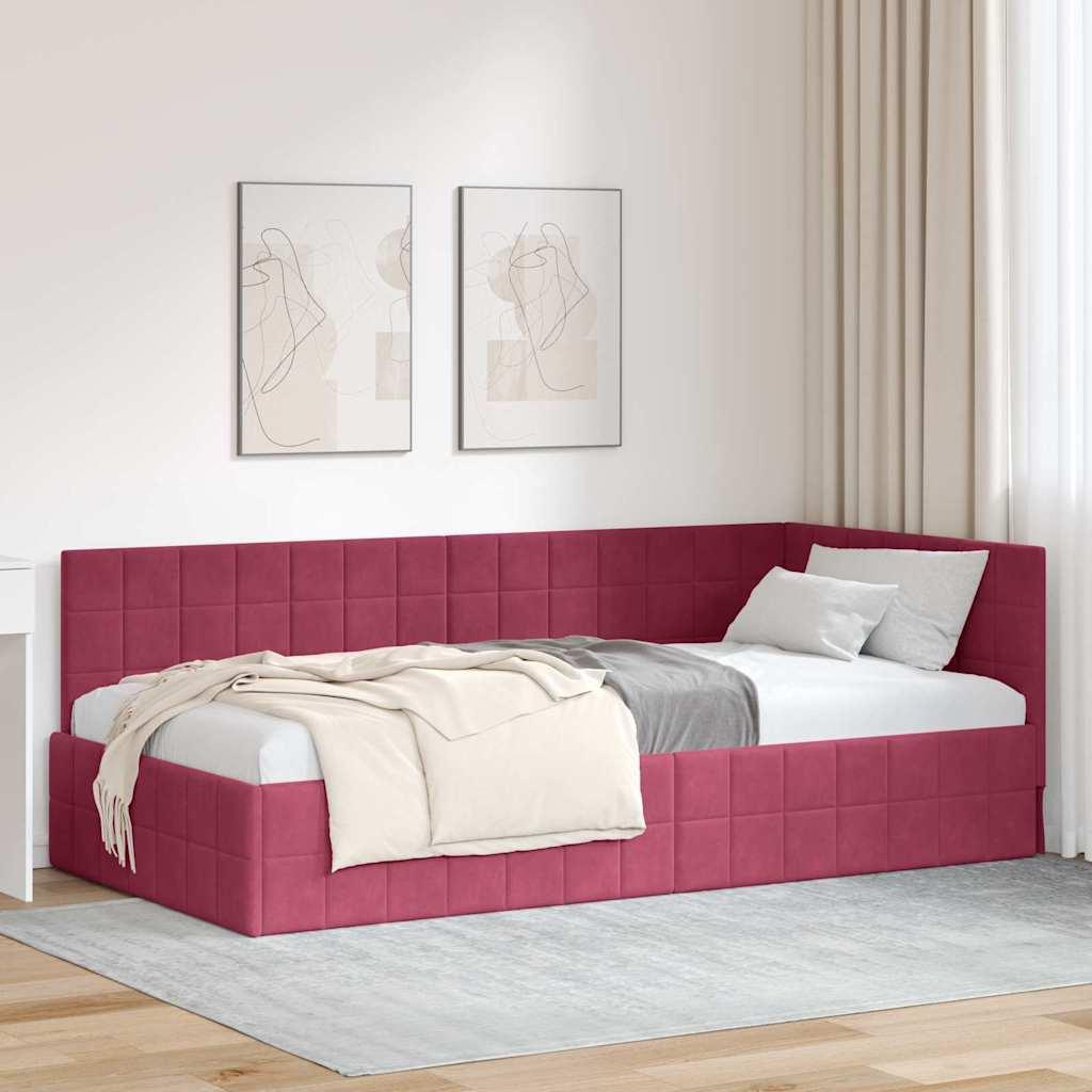 Cadre de lit d'angle Rouge bordeaux 90 x 190 cm Velours