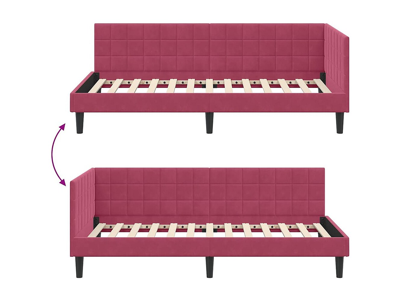 Cadre de lit d'angle Rouge bordeaux 90 x 200 cm Velours