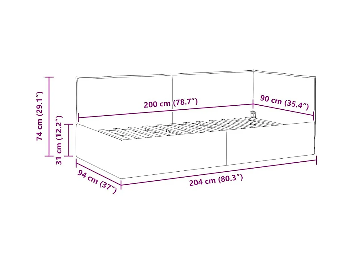 Cadre de lit d'angle Autre Vert foncé 90 x 200 cm