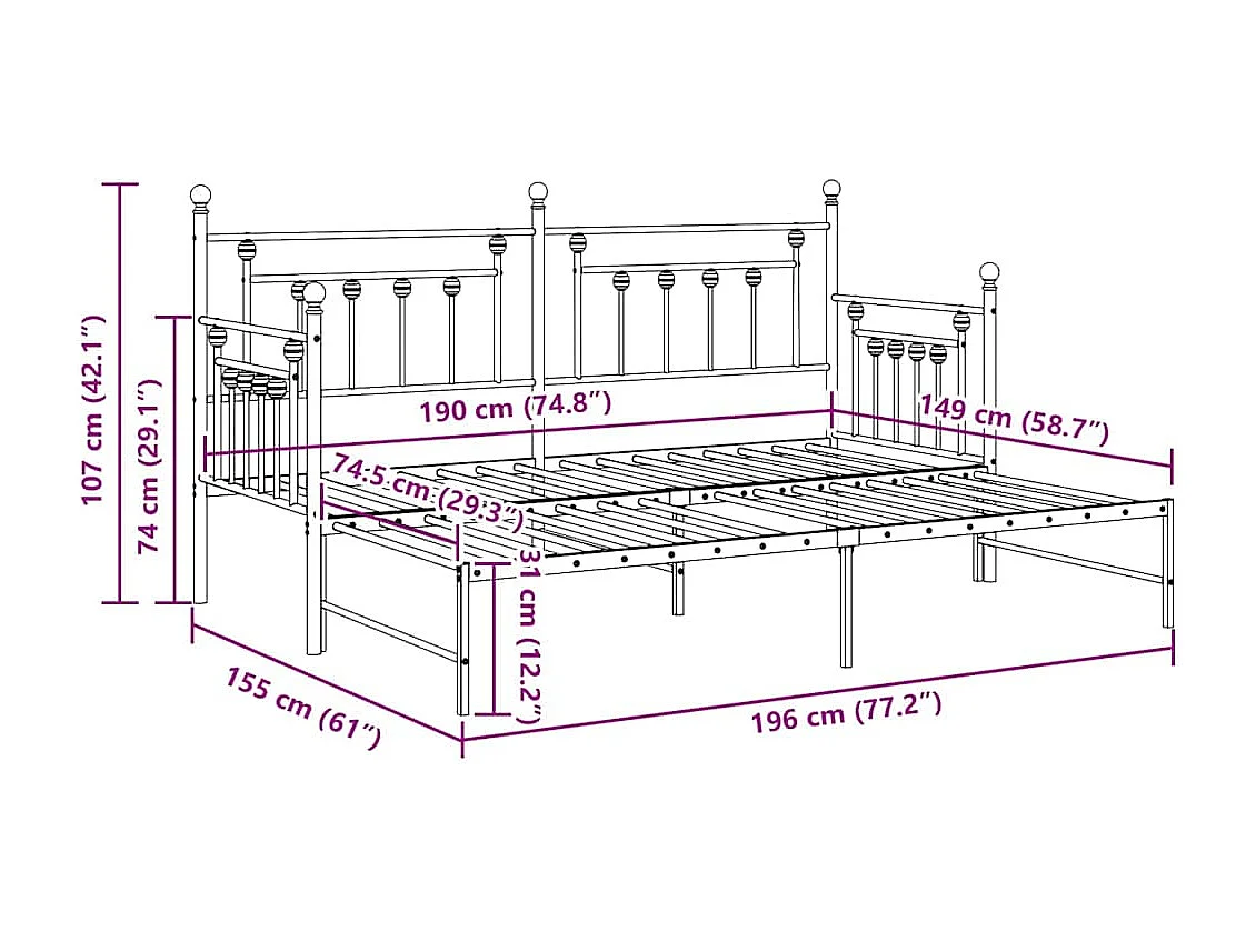 Cadre de lit de jour Blanc 75 x 190 cm Acier
