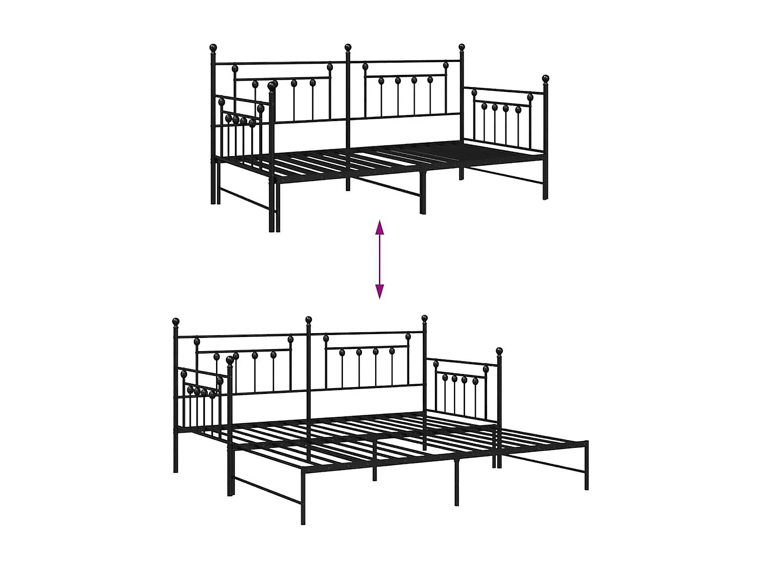 Cadre de lit de jour Noir 100 x 200 cm Acier enduit de poudre