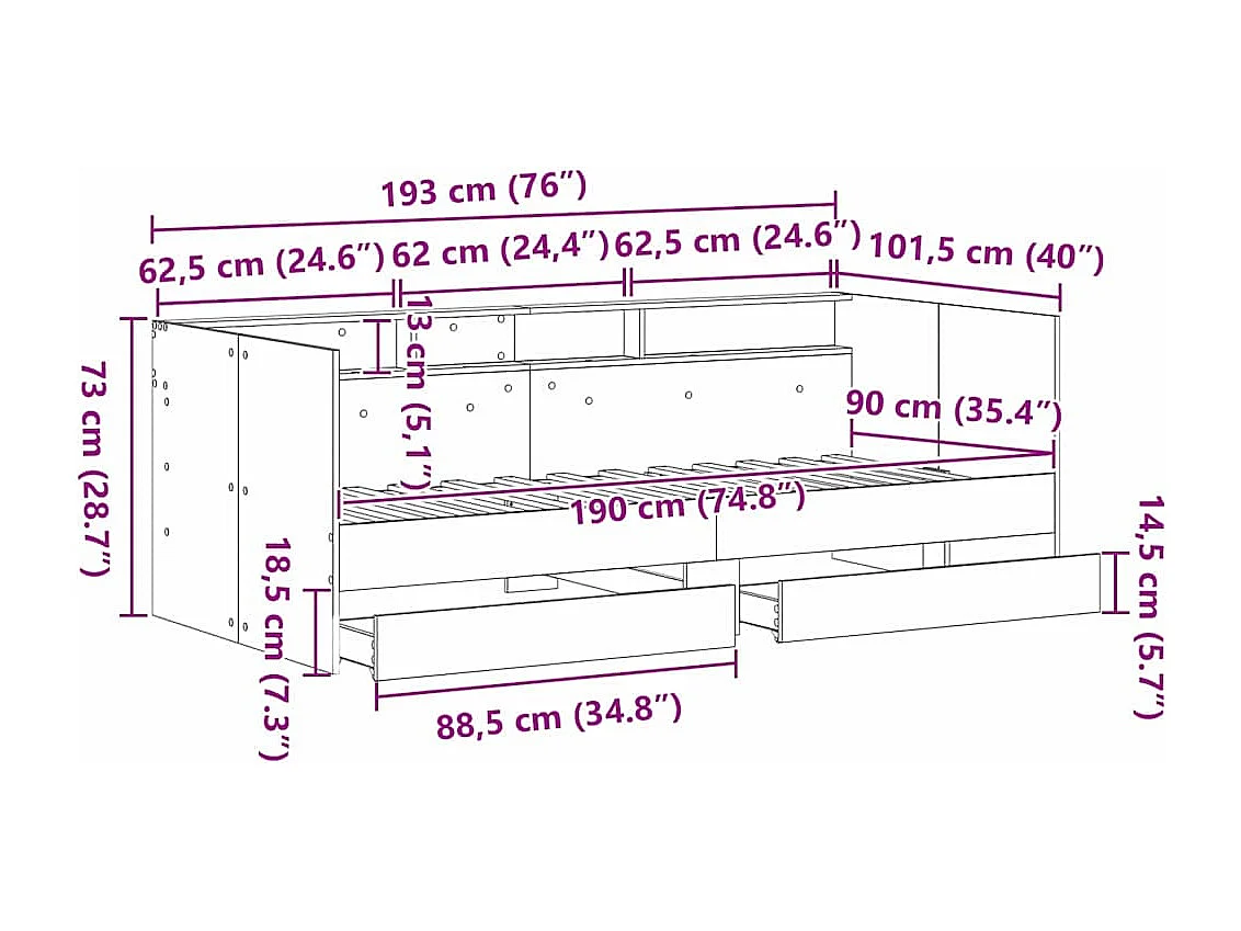 Lit de jour et tiroirs chêne sonoma 90x190 cm bois d'ingénierie FR51939