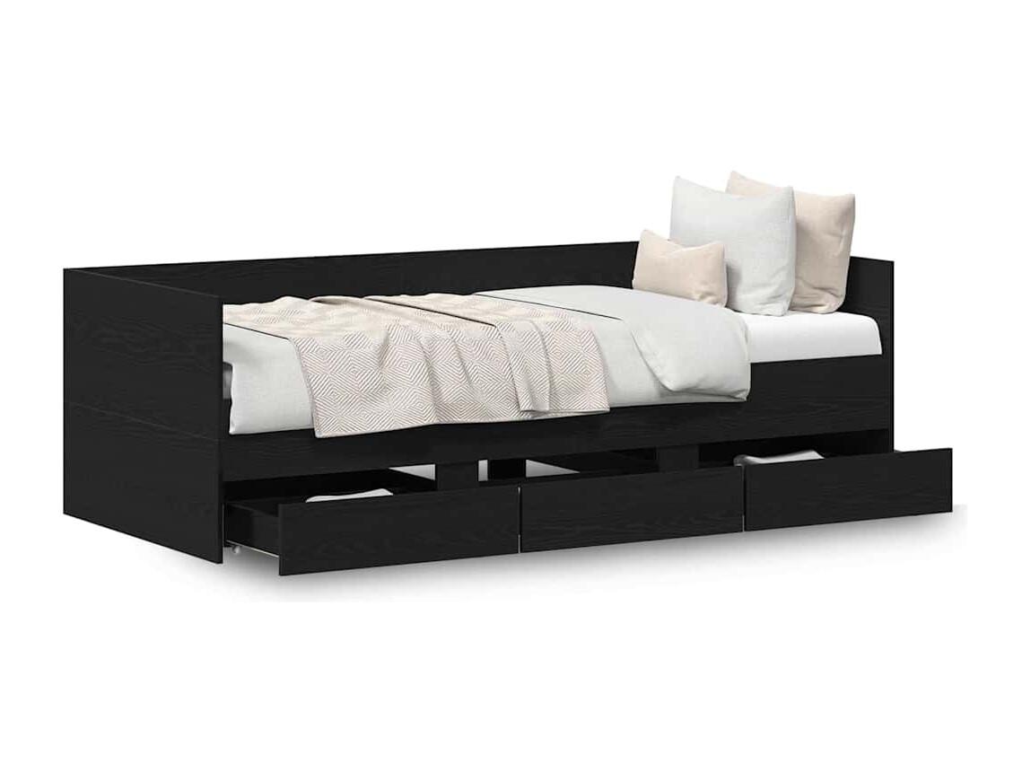 Lit de jour avec tiroirs noir 90x190 cm bois d'ingénierie FR76833