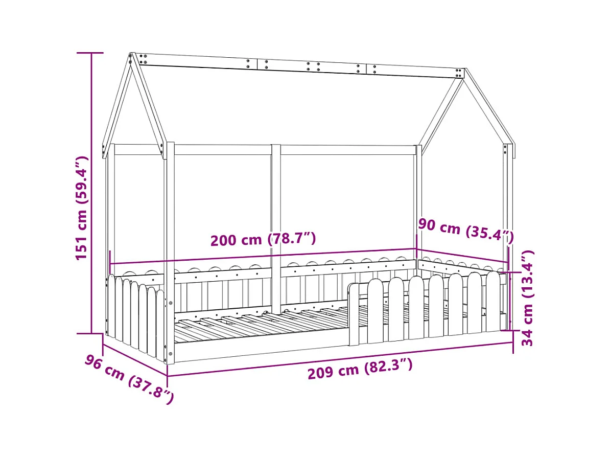 Cadre de lit d'enfants forme de maison sans matelas 90x200 cm