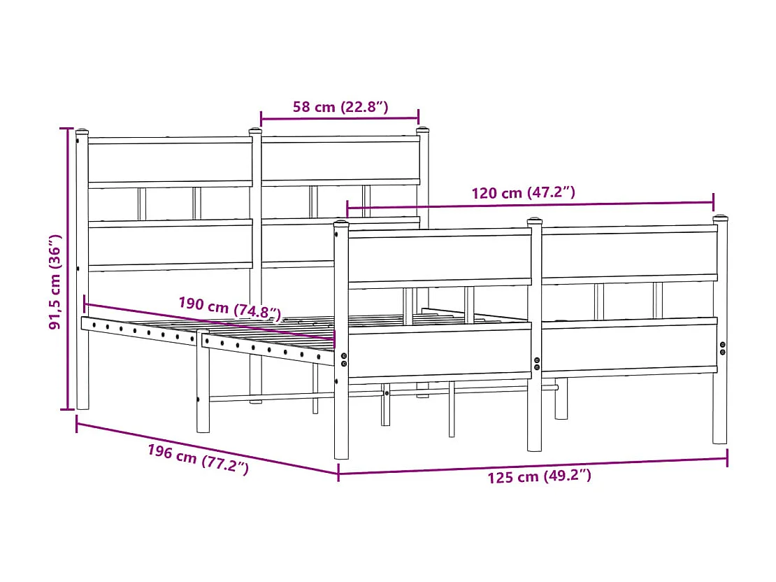 Cadre de lit en métal sans matelas chêne fumé 120x190 cm