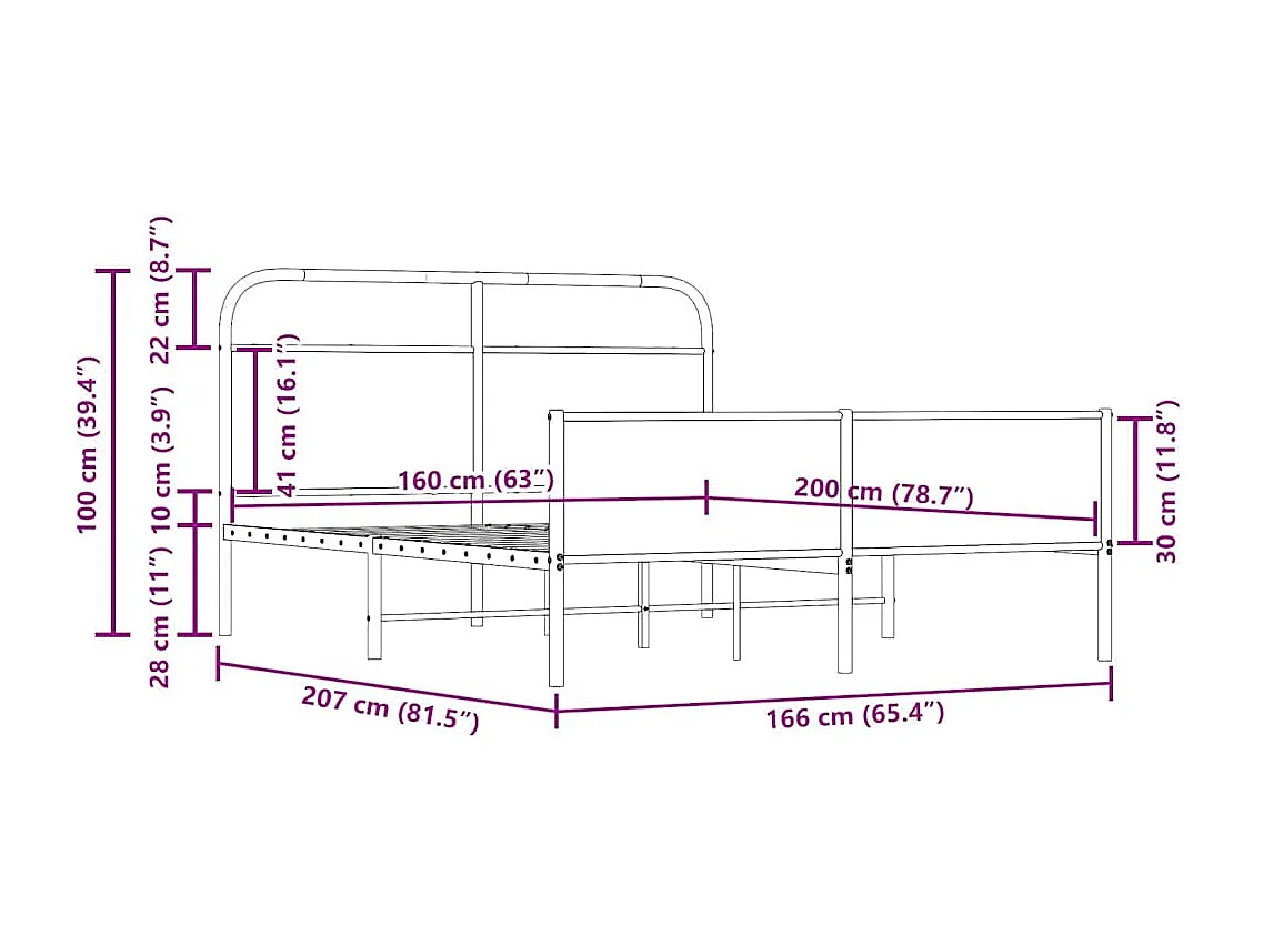 Cadre de lit en métal sans matelas chêne fumé 160x200 cm