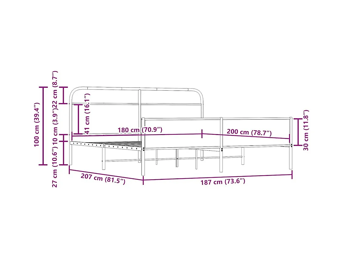 Cadre de lit en métal sans matelas chêne fumé 180x200 cm