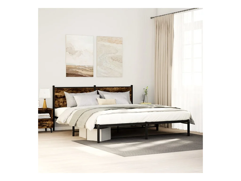 Cadre de lit en métal sans matelas chêne fumé 183x213 cm
