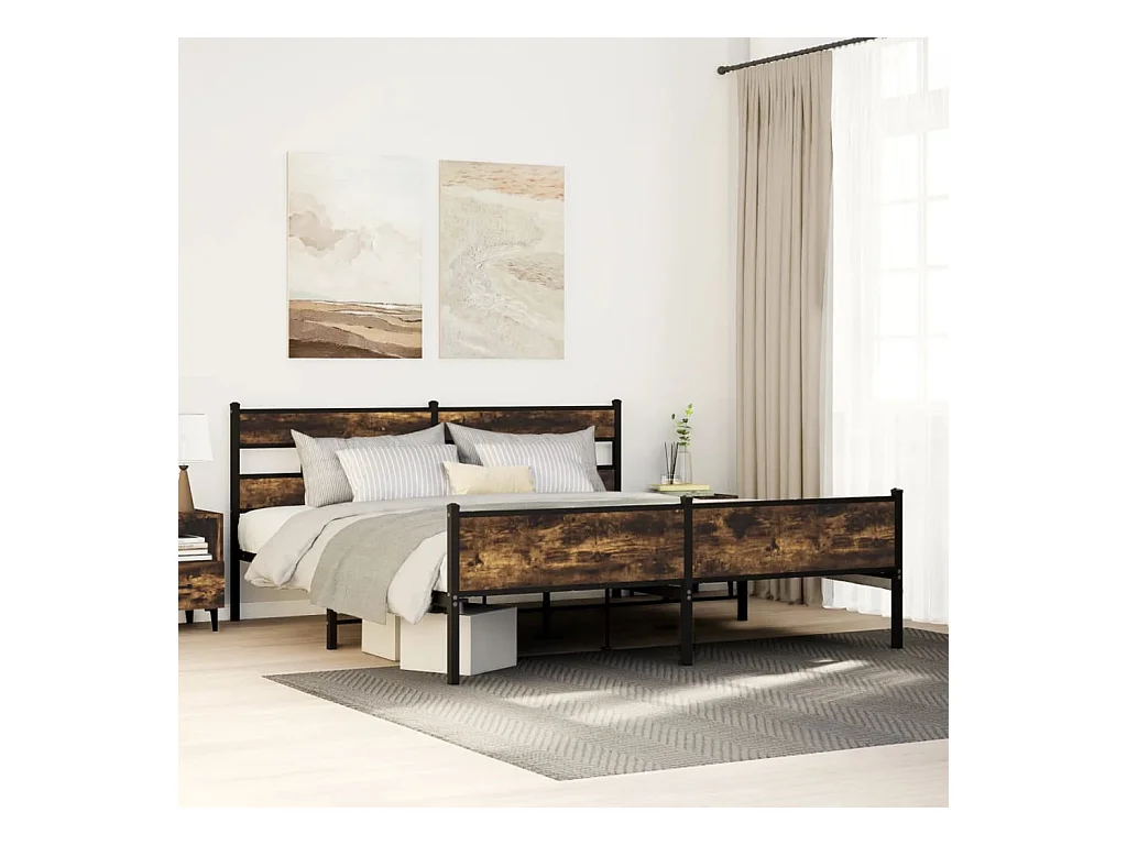 Cadre de lit en métal sans matelas chêne fumé 183x213 cm