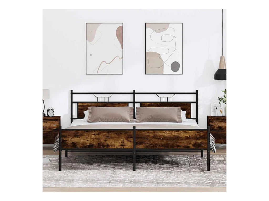 Cadre de lit en métal sans matelas chêne fumé 193x203 cm