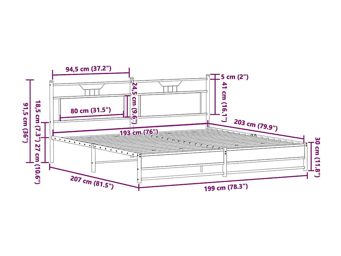 Cadre de lit en métal sans matelas chêne fumé 193x201 cm