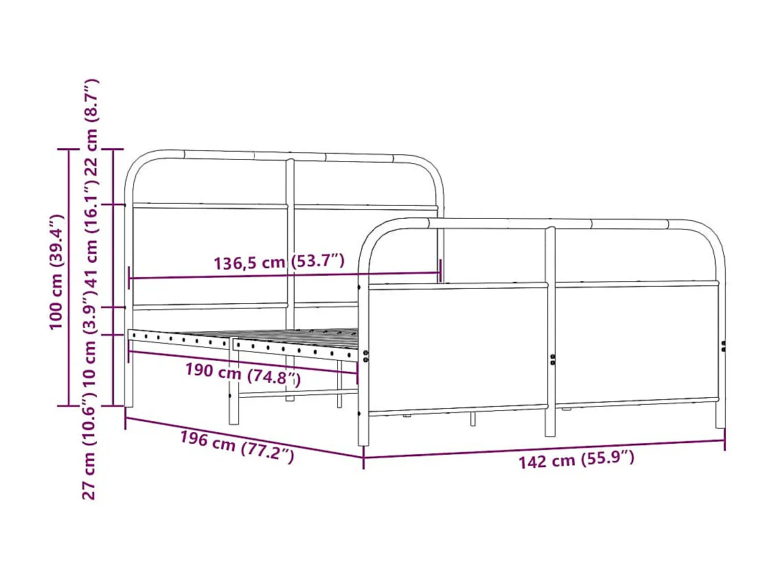 Cadre de lit en métal sans matelas chêne sonoma 137x190 cm