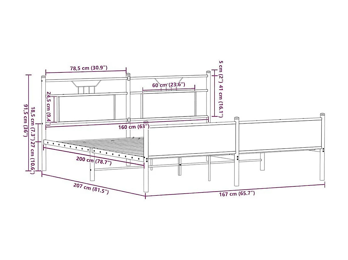 Cadre de lit en métal sans matelas chêne fumé 160x200 cm