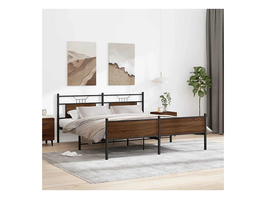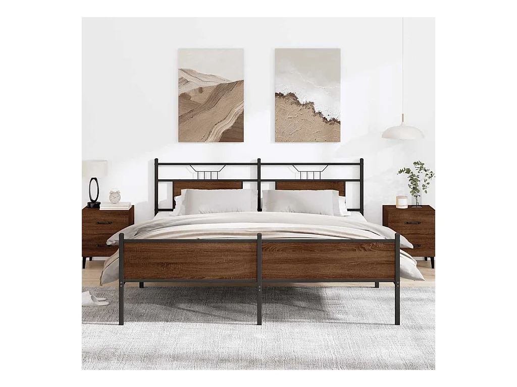 Cadre de lit en métal sans matelas chêne marron 160x200 cm
