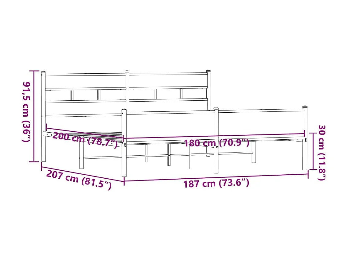 Cadre de lit en métal sans matelas chêne sonoma 180x200 cm