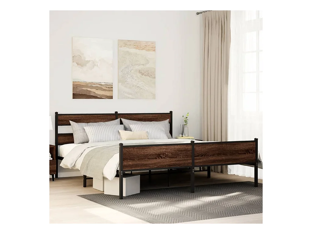 Cadre de lit en métal sans matelas chêne marron 180x200 cm
