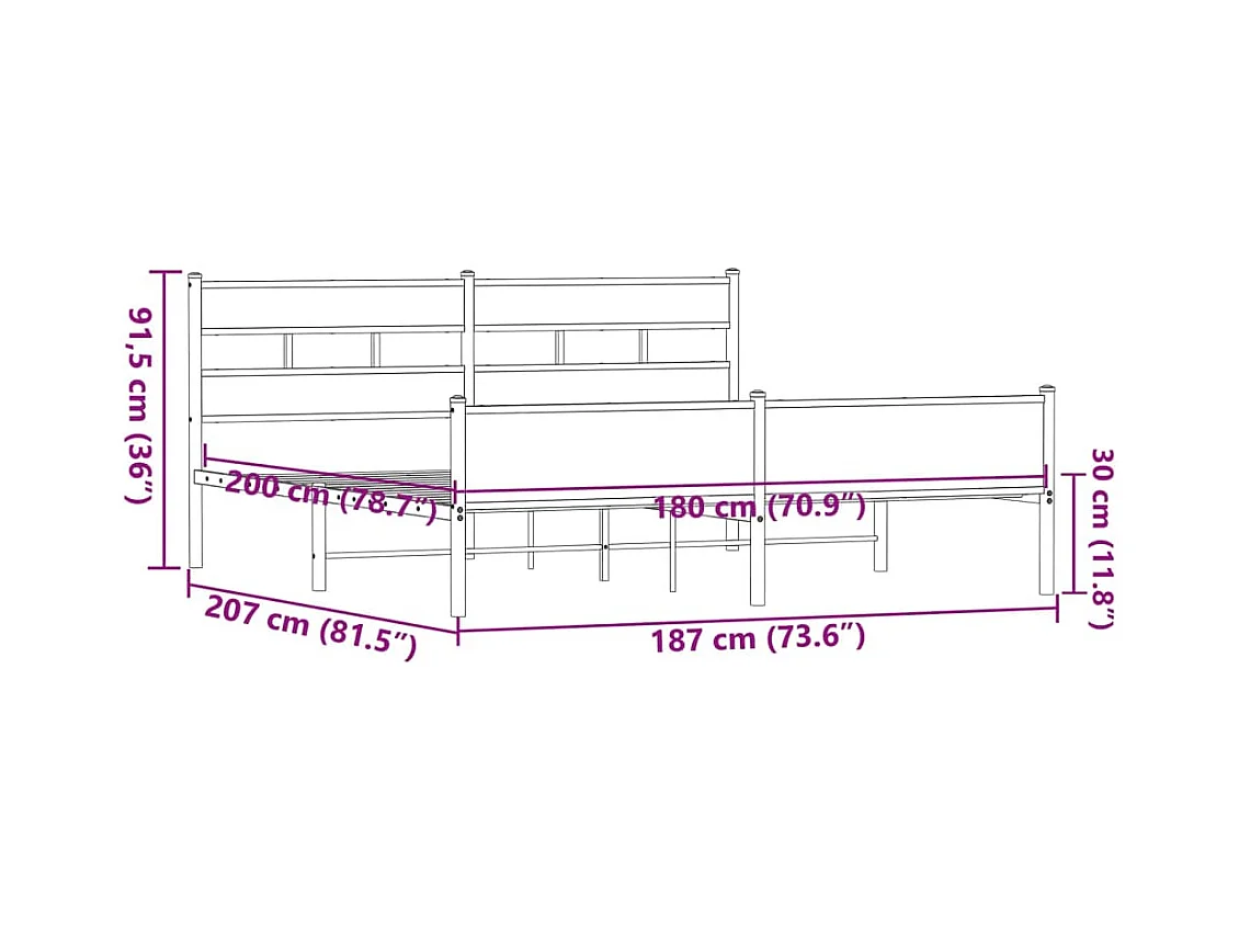 Cadre de lit en métal sans matelas chêne fumé 180x200 cm