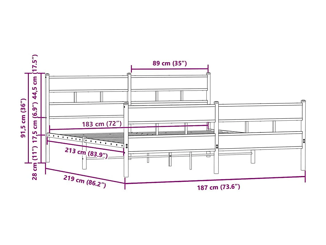 Cadre de lit en métal sans matelas chêne fumé 183x213 cm