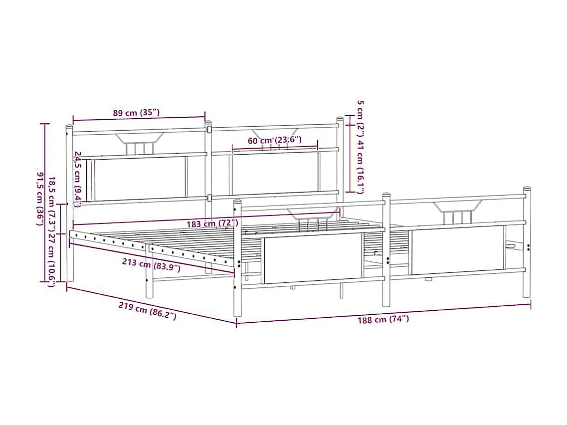 Cadre de lit en métal sans matelas chêne fumé 183x213 cm
