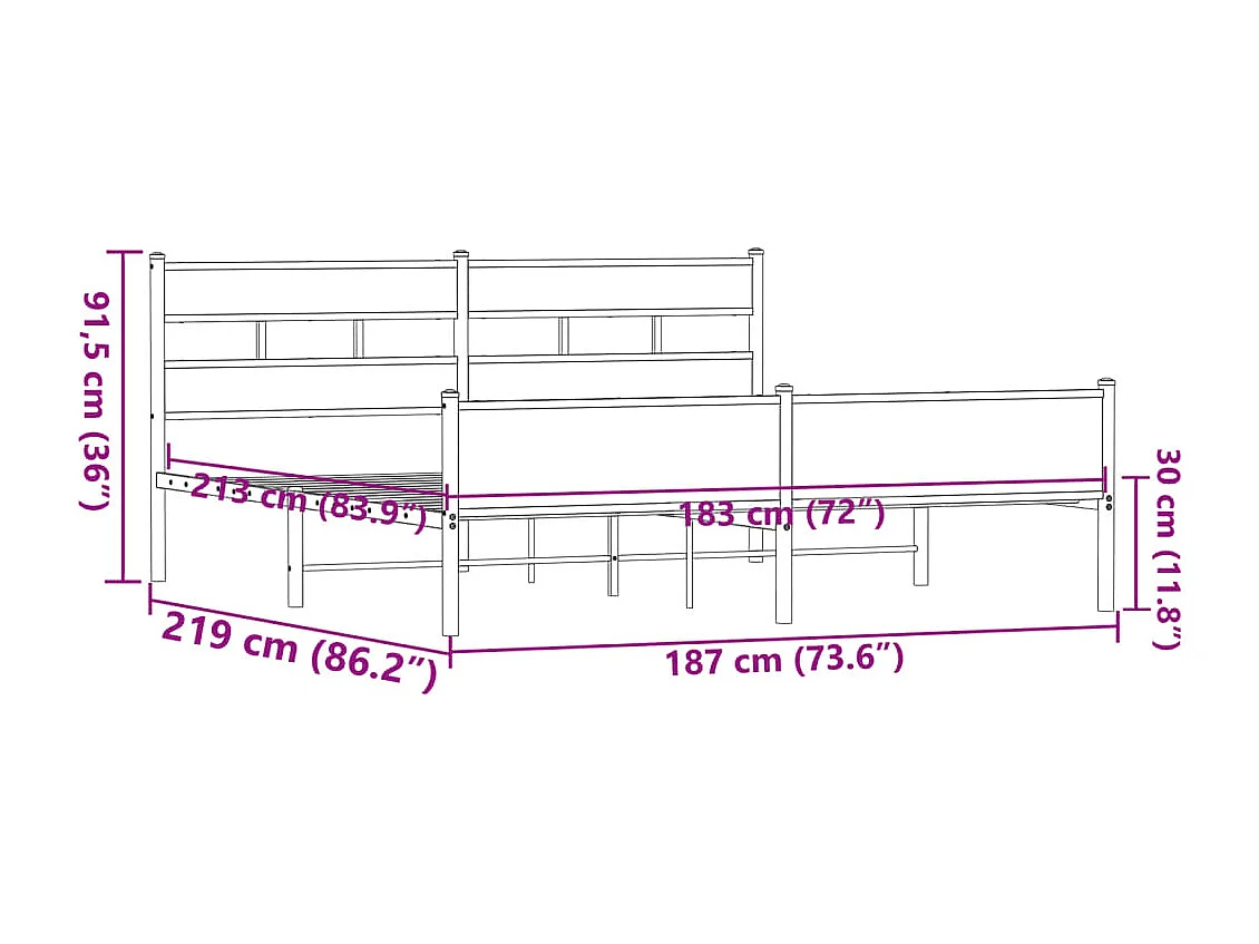 Cadre de lit en métal sans matelas chêne sonoma 183x213 cm