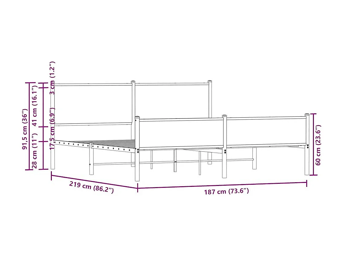 Cadre de lit en métal sans matelas chêne sonoma 183x213 cm