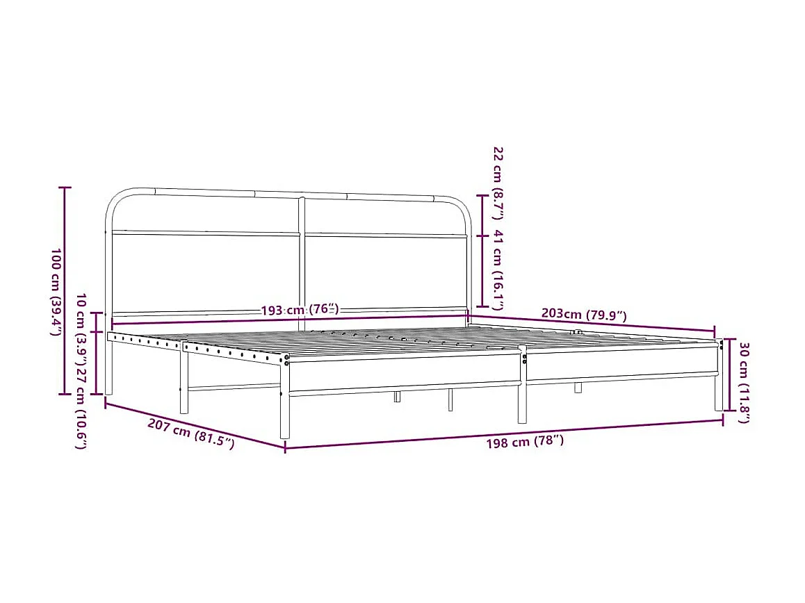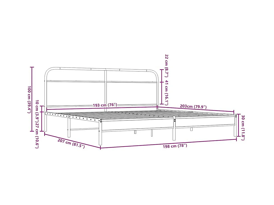 Cadre de lit en métal sans matelas chêne fumé 193x203 cm