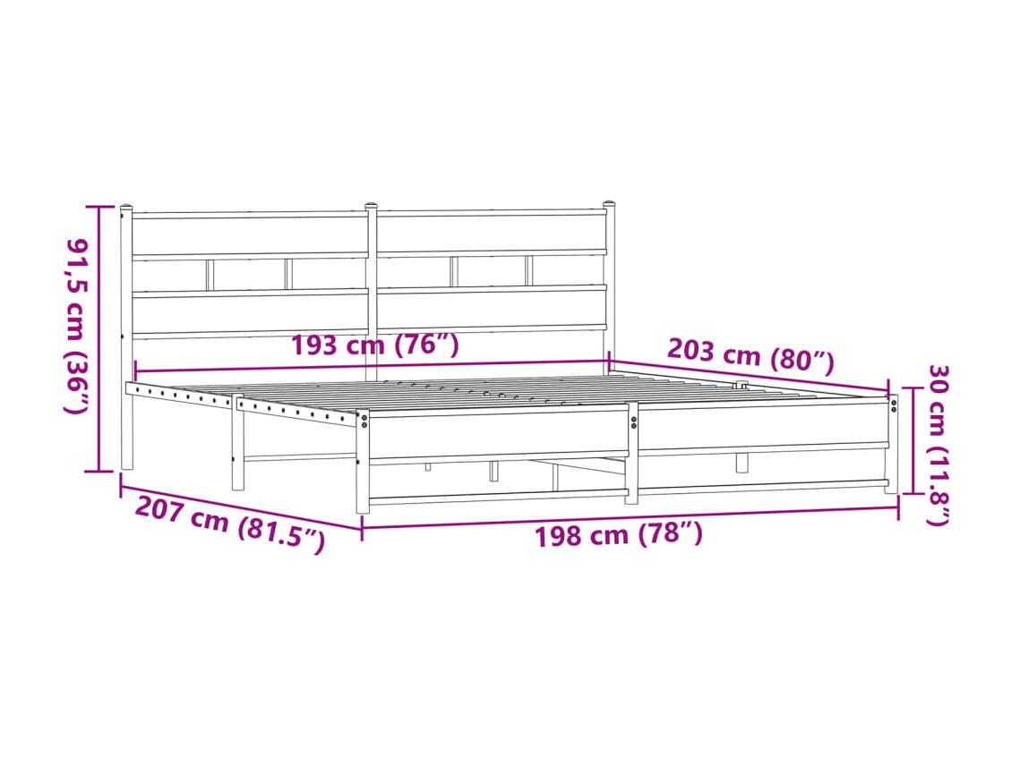 Cadre de lit en métal sans matelas chêne fumé 193x203 cm