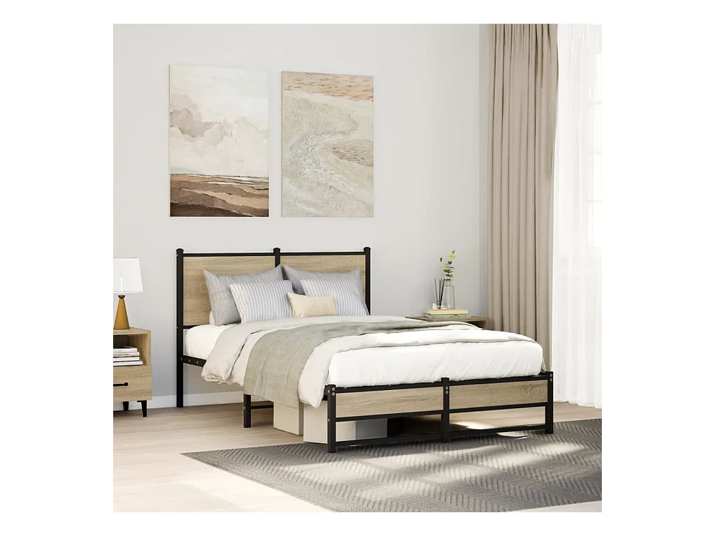 Cadre de lit en métal sans matelas chêne sonoma 120x190 cm