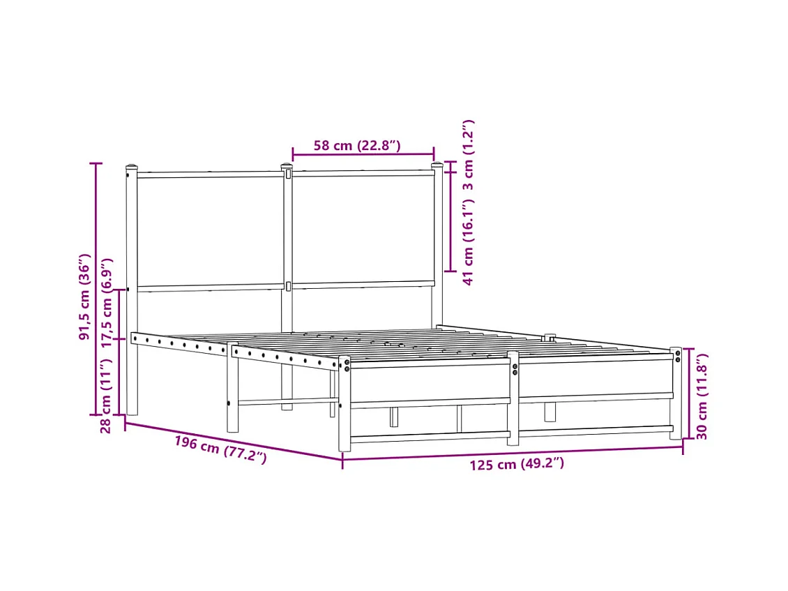 Cadre de lit en métal sans matelas chêne fumé 120x190 cm