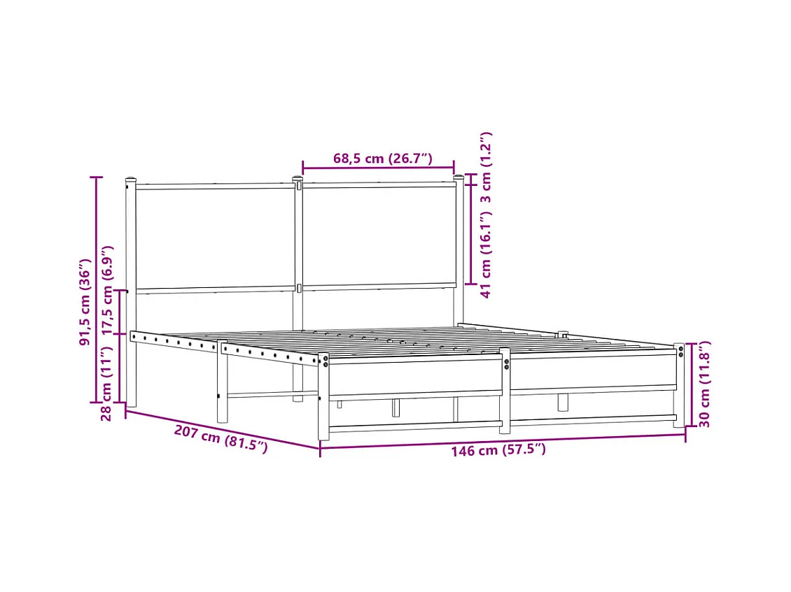 Cadre de lit en métal sans matelas chêne fumé 140x200 cm