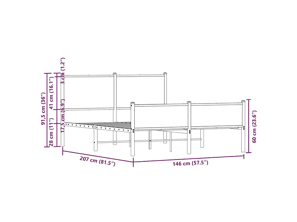 Cadre de lit en métal sans matelas chêne sonoma 140x200 cm