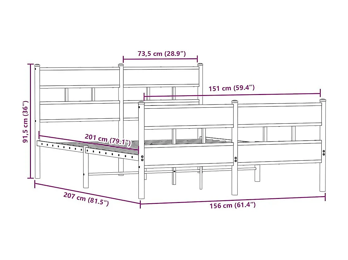 Cadre de lit en métal sans matelas chêne marron 150x200 cm