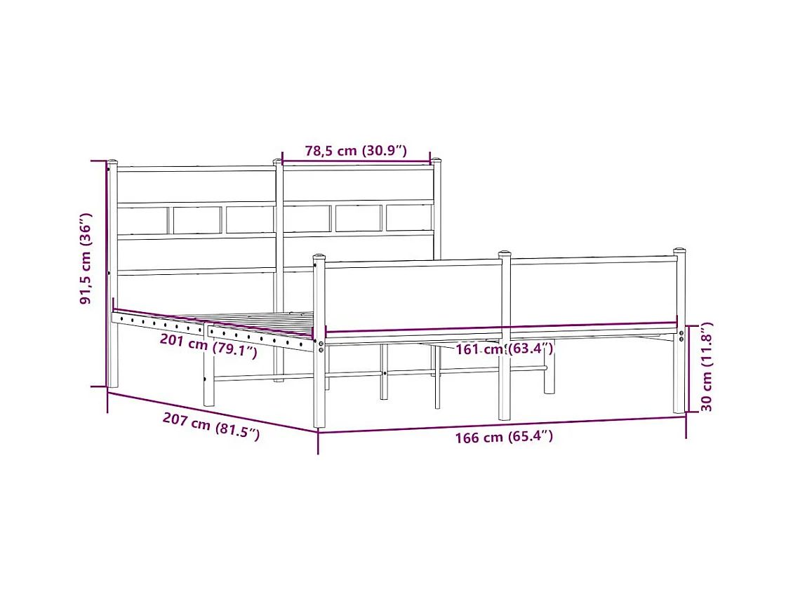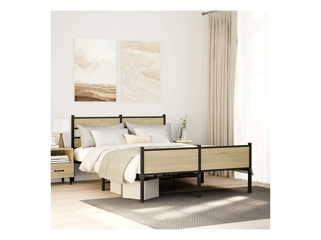 Cadre de lit en métal sans matelas chêne sonoma 160x200 cm