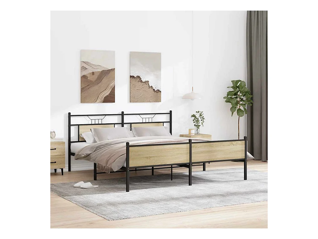 Cadre de lit en métal sans matelas chêne sonoma 180x200 cm