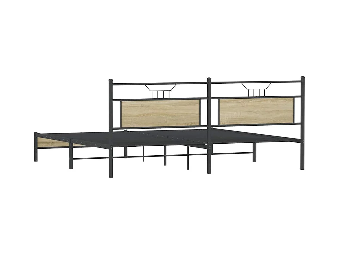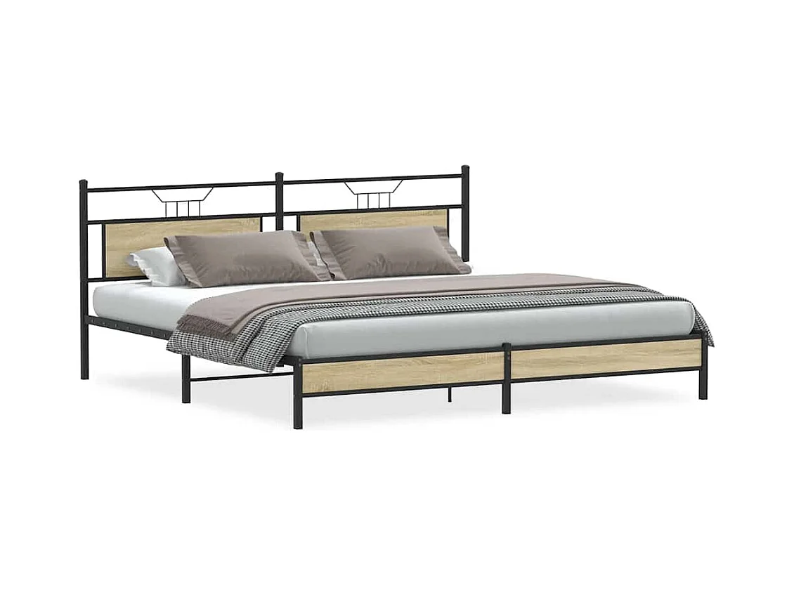 Lit adulte en métal avec tête de lit chêne sonoma 193x203 cm FR712038