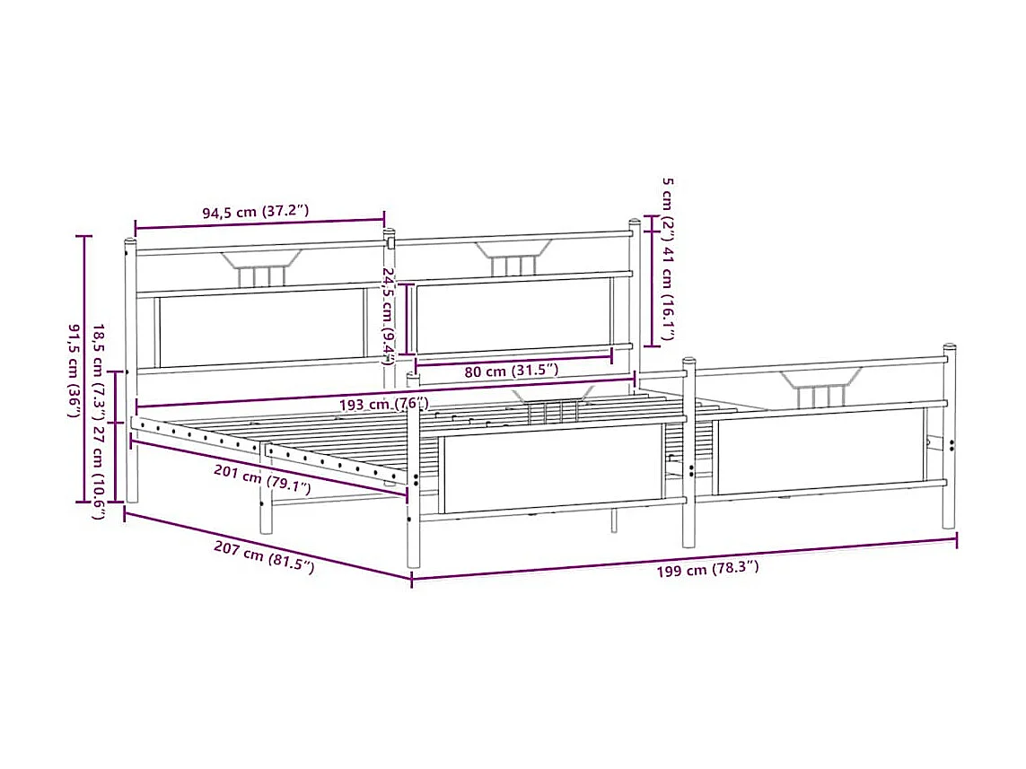 Cadre de lit en métal sans matelas chêne sonoma 193x201 cm