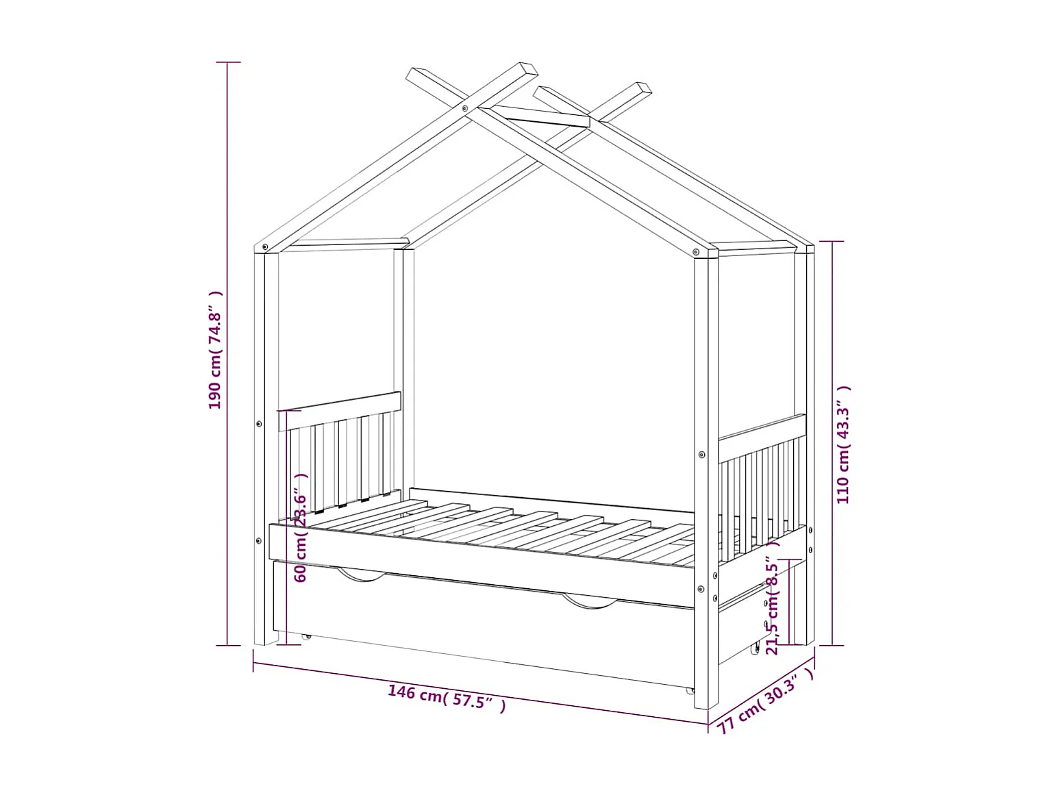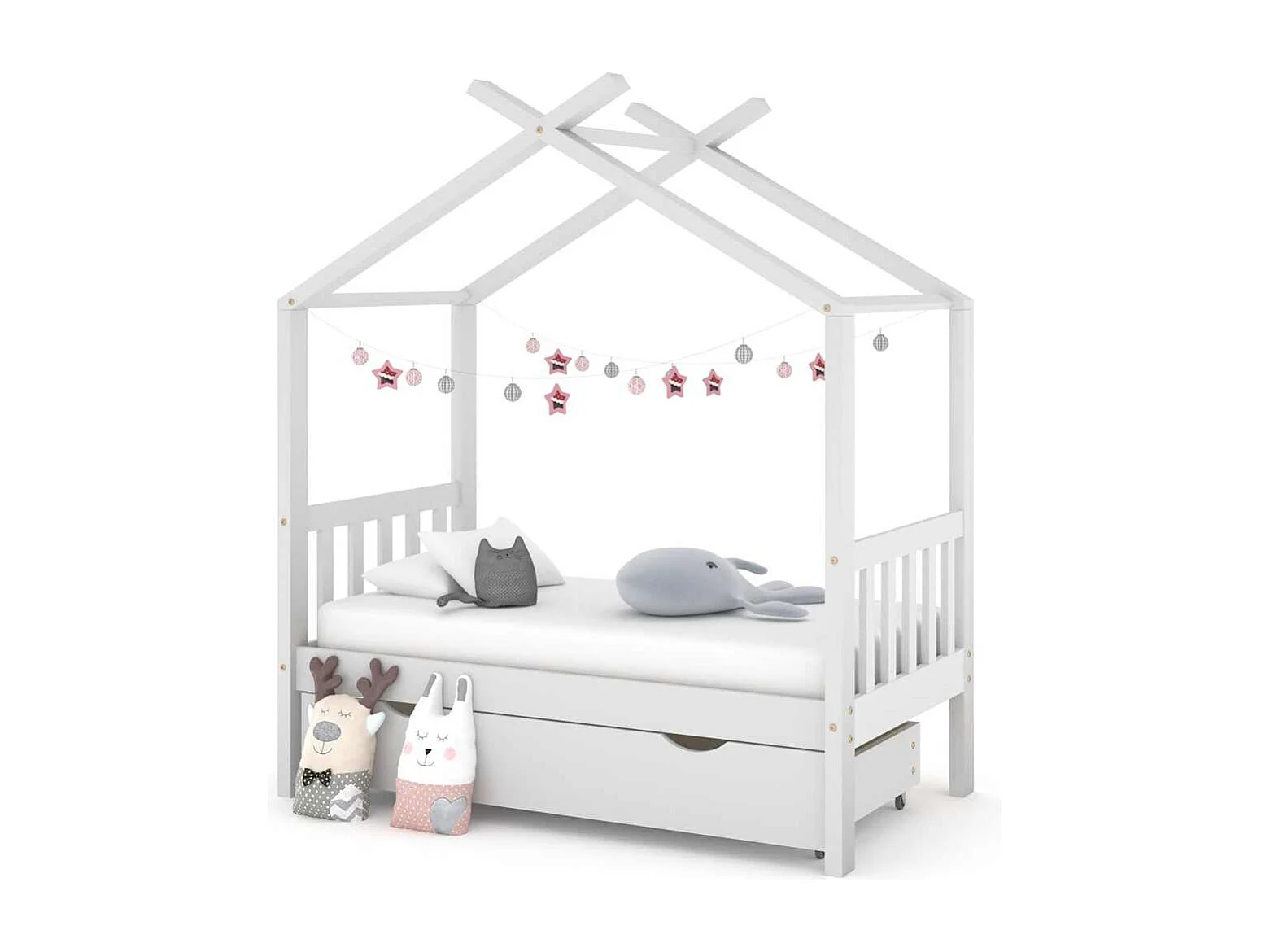 Cadre de lit enfant avec tiroir blanc pin massif 70x140 cm
