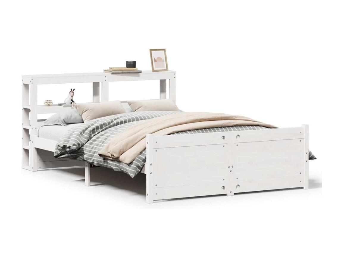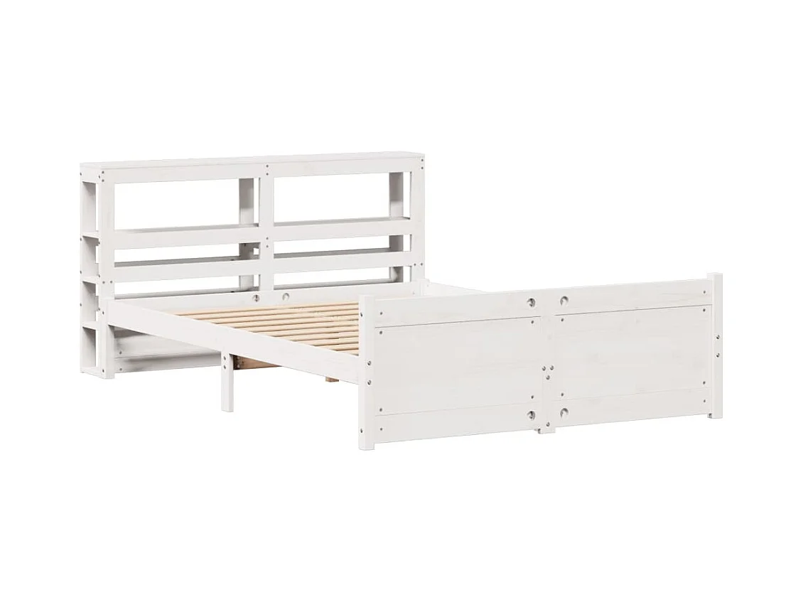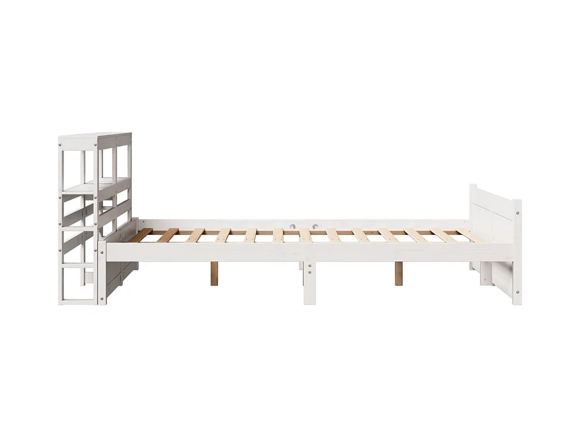 Lit bibliothèque sans matelas blanc 135x190 cm bois pin massif