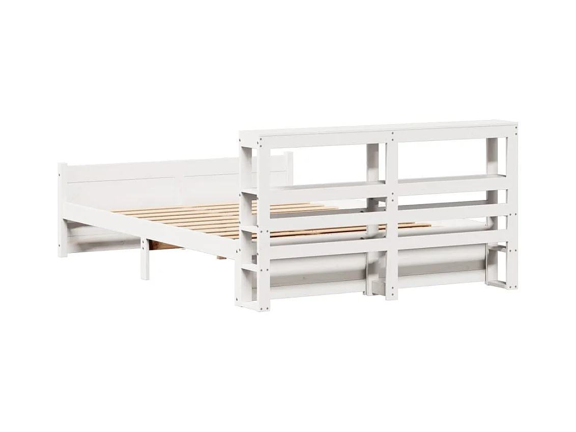 Lit bibliothèque sans matelas blanc 135x190 cm bois massif
