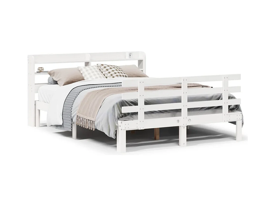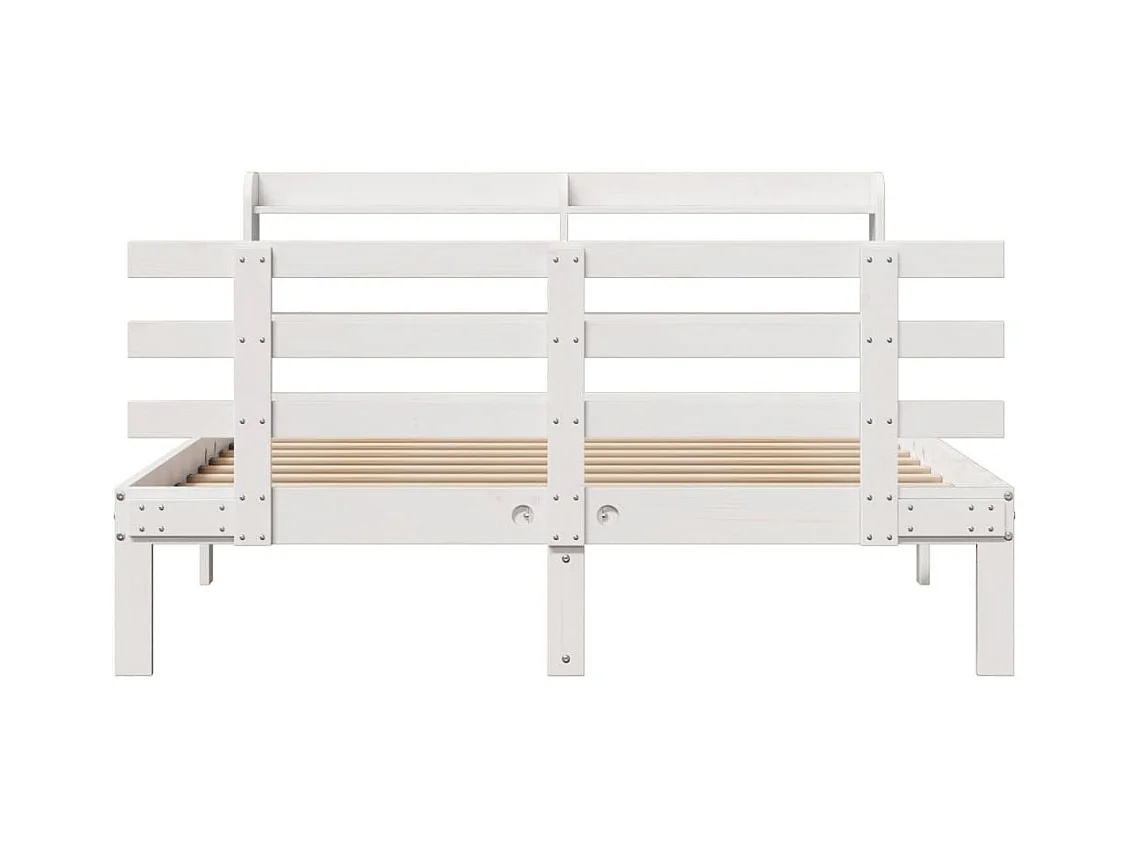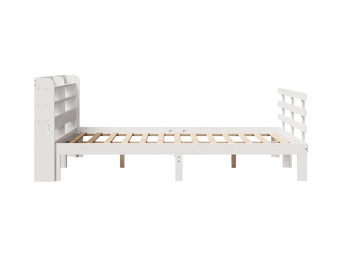 Lit bibliothèque sans matelas blanc 135x190 cm bois pin massif