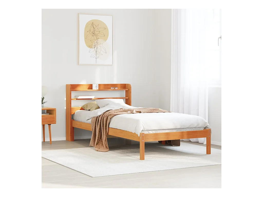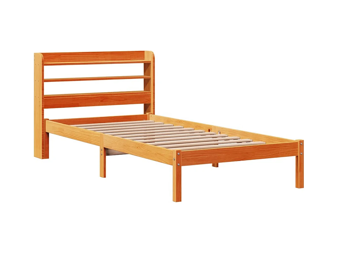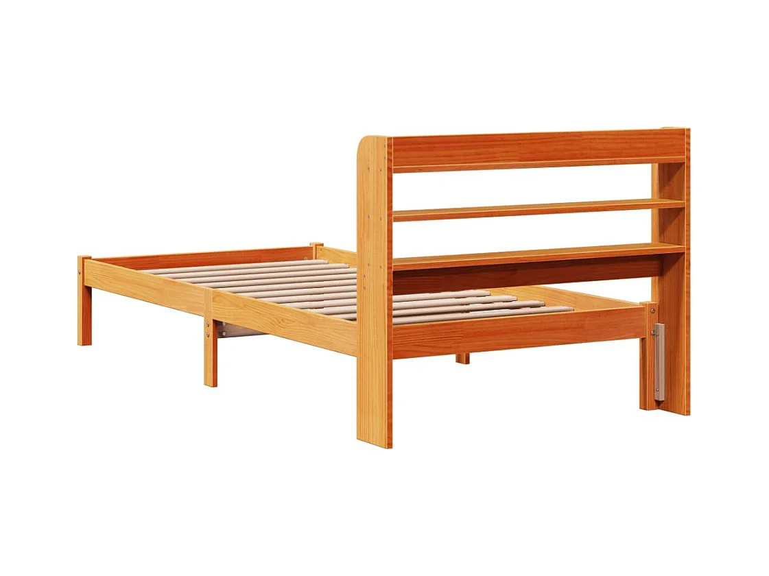 Lit bibliothèque sans matelas cire marron 100x200 cm pin massif
